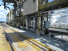 Figure 1 is a picture of a rail loading terminal at a remote refinery. The yellow pans on the rails are the spill containment system. Each pan has a drain outlet on it that feeds into an underground drainage system and into a sump. The refinery loaded fuel into the rail tank cars here and shipped the fuel to an ocean terminal about 150 miles away. There the tank cars were unloaded through a bottom valve on the tank car. (The next time you’re sitting at a railroad crossing waiting for the train to go by you can see the bottom valve/outlet on some tank cars and not on others. The ones that don’t have bottom valves are unloaded from the top. It all depends on what is being shipped.)