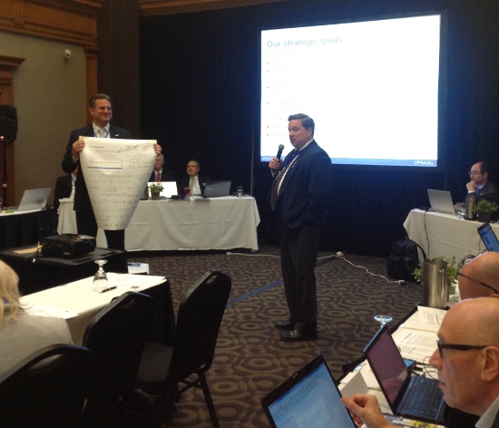 PMAC Past President Kevin Aguanno presenting the results of an IPMA strategy working session to the delegates.